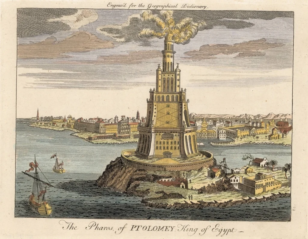 Rising majestically from the harbour entrance of ancient Alexandria, the Pharos Lighthouse stood as one of humanity’s most ambitious architectural achievements. For nearly 1,500 years, this colossal tower guided ships safely into one of the ancient world’s greatest ports, while simultaneously proclaiming the power, wealth, and technical sophistication of Ptolemaic Egypt. Though it has long since vanished, the Pharos remains legendary—one of the Seven Wonders of the Ancient World and the prototype for all lighthouses that followed.